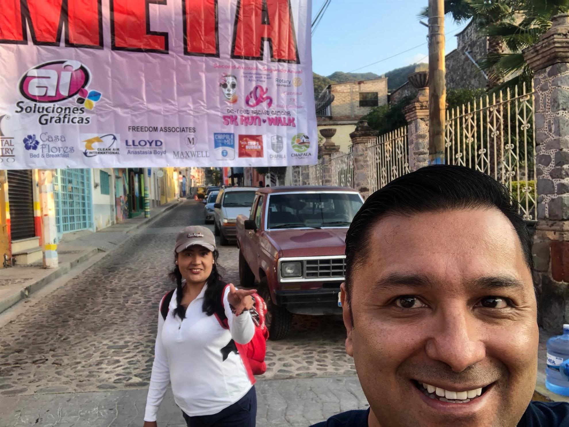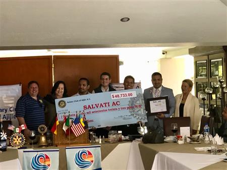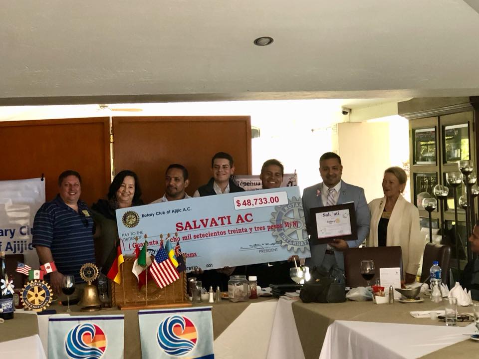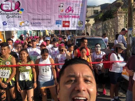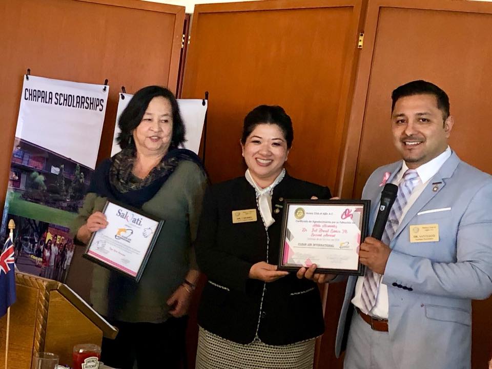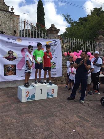 Photos of the run and presentation of a check for 48,733 pesos to benefit Salvati Foundation that will help women find treatment for breast cancer at are Rotary Luncheon on January 8, 2019.